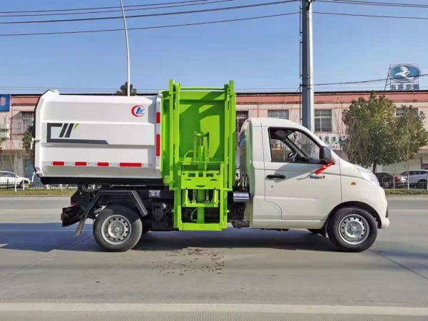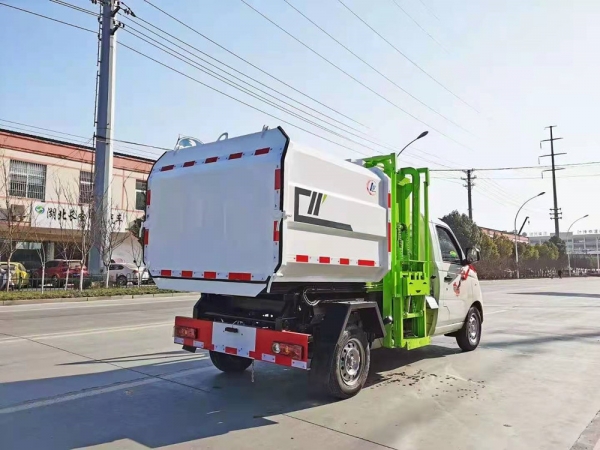 掛桶式垃圾車(自裝卸式垃圾車)介紹:掛桶式垃圾車又稱自裝卸式垃圾車,由密封式垃圾廂、液壓提升翻轉系統、操作系統組成。垃圾桶內垃圾翻倒上下一次工作循環時間≤50秒。可選配全國通用塑料垃圾桶和鐵桶,能實現一臺車與多個垃圾桶聯合作業,循環運輸,充分提高了車輛的運輸能力,節省財務預算。廂體密封性好,無二次污染,可運輸各類垃圾,特別適用于短途運輸和轉運垃圾,如環衛部門對城鎮垃圾的清理、運輸等。