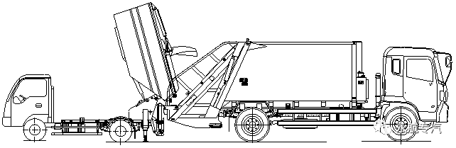 3.2與大中型垃圾壓縮車對接,伸出支腿,傾翻垃圾箱,打開滑板及刮板,傾倒垃圾。