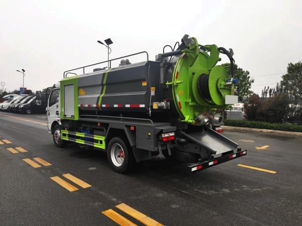 清洗部分:3方水箱,采用4mmQ235優(yōu)質(zhì)碳鋼板,水箱兩側(cè)消防接口進(jìn)水,工具箱一個。采用德國品浮高壓泵215升流量,22兆帕,配60米內(nèi)徑19#高壓管,10個大小不同噴頭一套, 后置式清洗卷盤,帶淋管裝置(用于淋洗高壓管疏通管道過后上面殘留的污物),帶氣吹水功能(用于吹出每次高壓管工作完以后內(nèi)部殘留的水漬,防止天冷結(jié)冰影響下次使用)