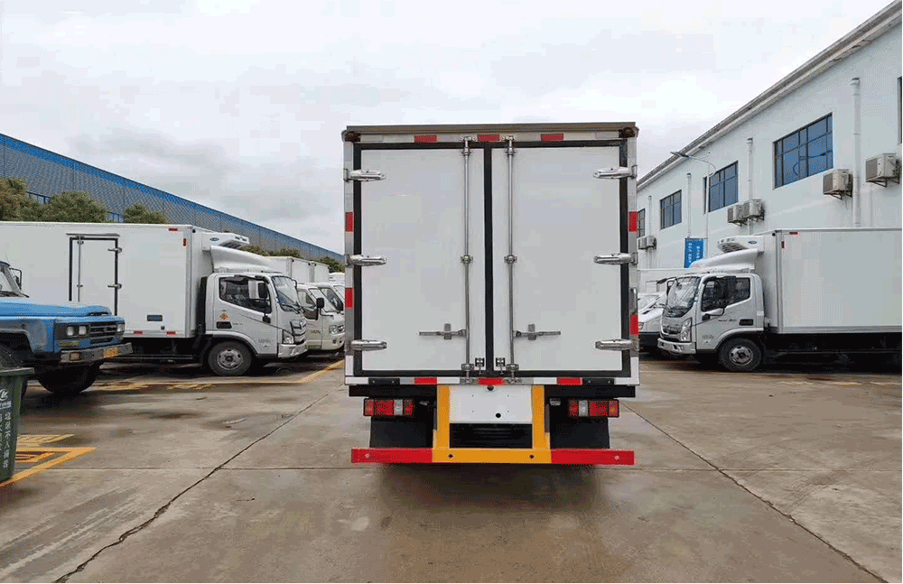 | 其他 | 車廂頂部封閉不可開啟,防護材料:Q235A碳鋼,連接方式:左右側面防護以及后部防護采用焊接連接,后防護斷面尺寸(mm):150×50,后部防護離地高度(mm):350;ABS系統型號:APG3550500A,ABS系統生產廠家:浙江亞太機電股份有限公司,選裝功率相當的其它型號制冷機組。 | ||