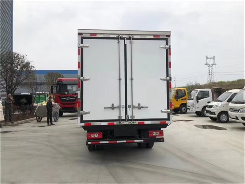 (2)廂板材質(zhì):內(nèi)外壁板選用國內(nèi)優(yōu)質(zhì)玻璃鋼(不吸光、隔熱性好、硬度強、抗氧化);中間保溫層為XPS擠塑聚笨板;廂體厚度8CM。地板采用鋁花紋板,門邊條采用迷宮式橡膠密封條。